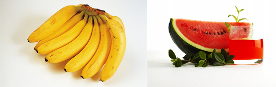 ‘설탕 수박’이라는 말이 사실이라고 해도 과언이 아닐 정도로 당도가 높은 과일. 게다가 흡수가 빨라서 많이 먹어도 금방 허기지기 때문에 다이어트 중 식사 대용으로는 좋지 않다. 큰 것 한 조각은 50kcal.