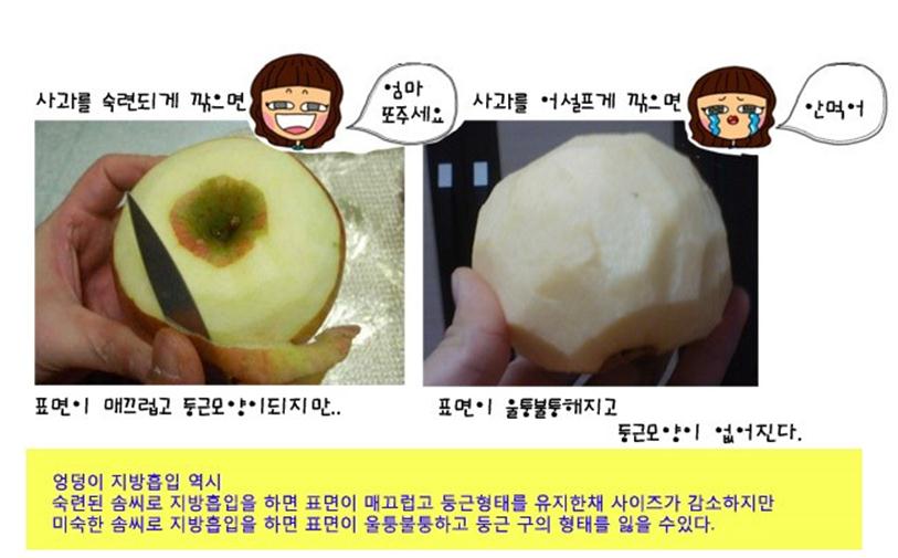 병원 선정시 파부표면을 잘 관찰 해 보시면 병원의 지방흡입 실력을 예상 하실 수 있을 것 입니다.