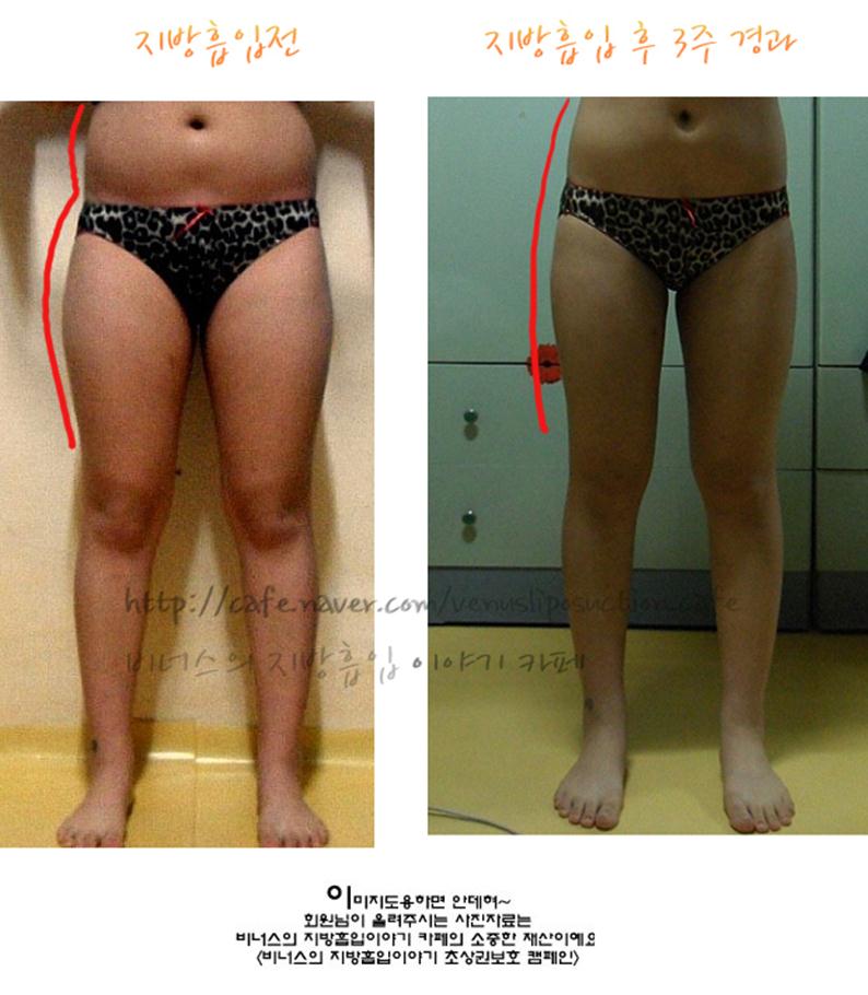 3. 허벅지 지방흡입 효과 ,전후사진보기