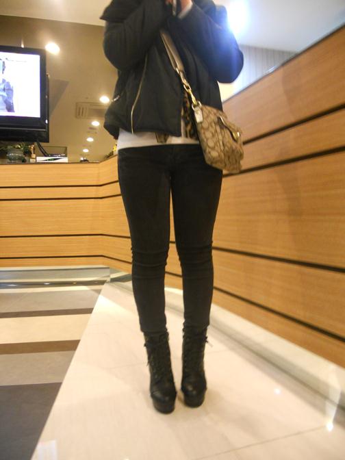 수술후 더욱 슬림해진 각선미로 수술 전 사이즈 미스로 구입 후 작아 서 입지 못하셨다는 그 스키니진을 입고
