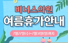2022년 하계 휴가 공지 안녕하세요~♡ 이번주부터는 무더위가 더욱 기승을 부린다고 하는데 여름철 몸관리에 더욱 힘써야 할 것 같아요. 더운 여름철 충전이 필요한 휴가철이 다가왔는데요. 비너스의원 식구분들은 휴가 계획이 어떻게 되시나요? 휴가 기간 동안...